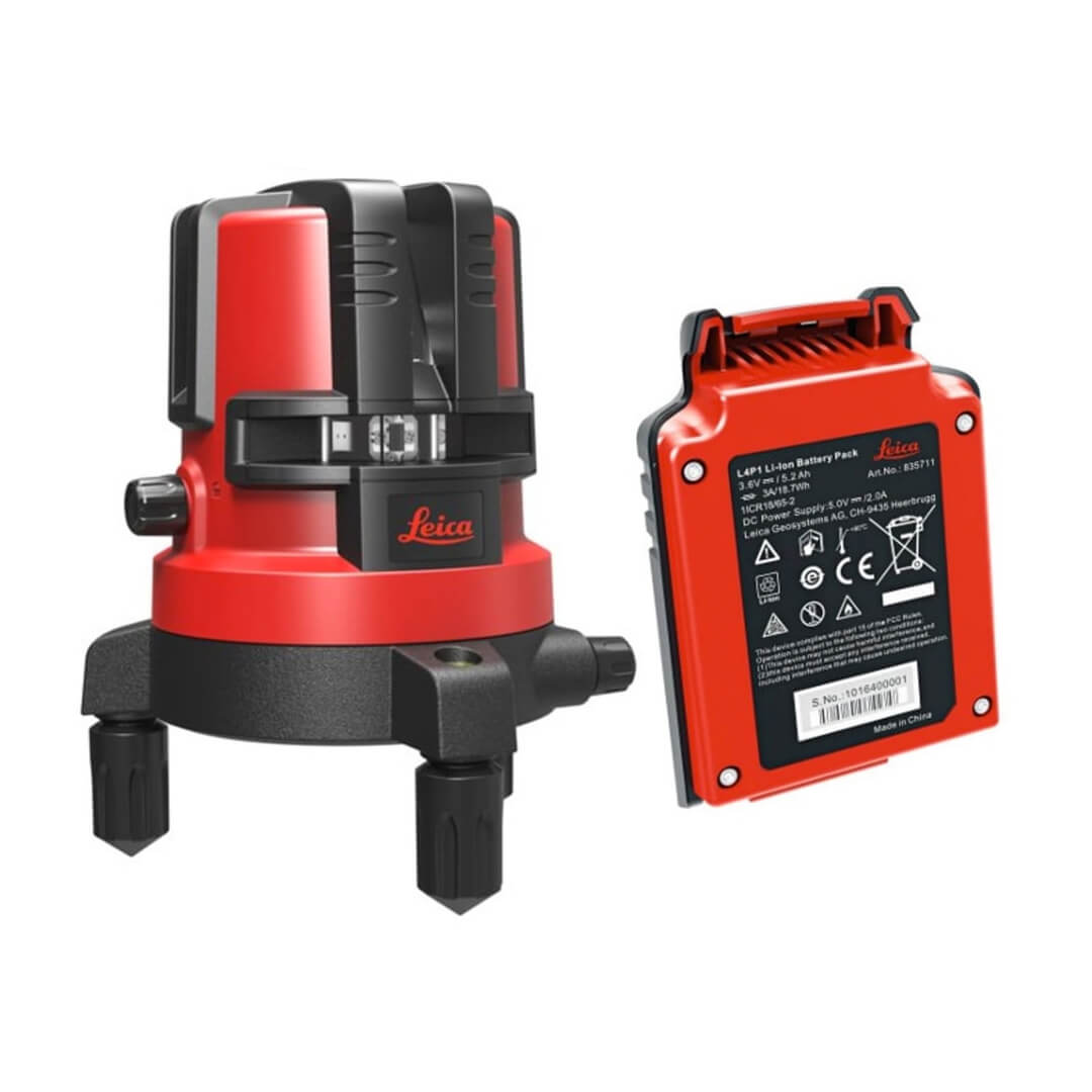 Leica Lino L4P1, standart alkalin pillerin yanı sıra, hem şarj edilebilir Li-Ion pillerle (tek bir şarjla 24 saate kadar kullanılabilir) çalışır.