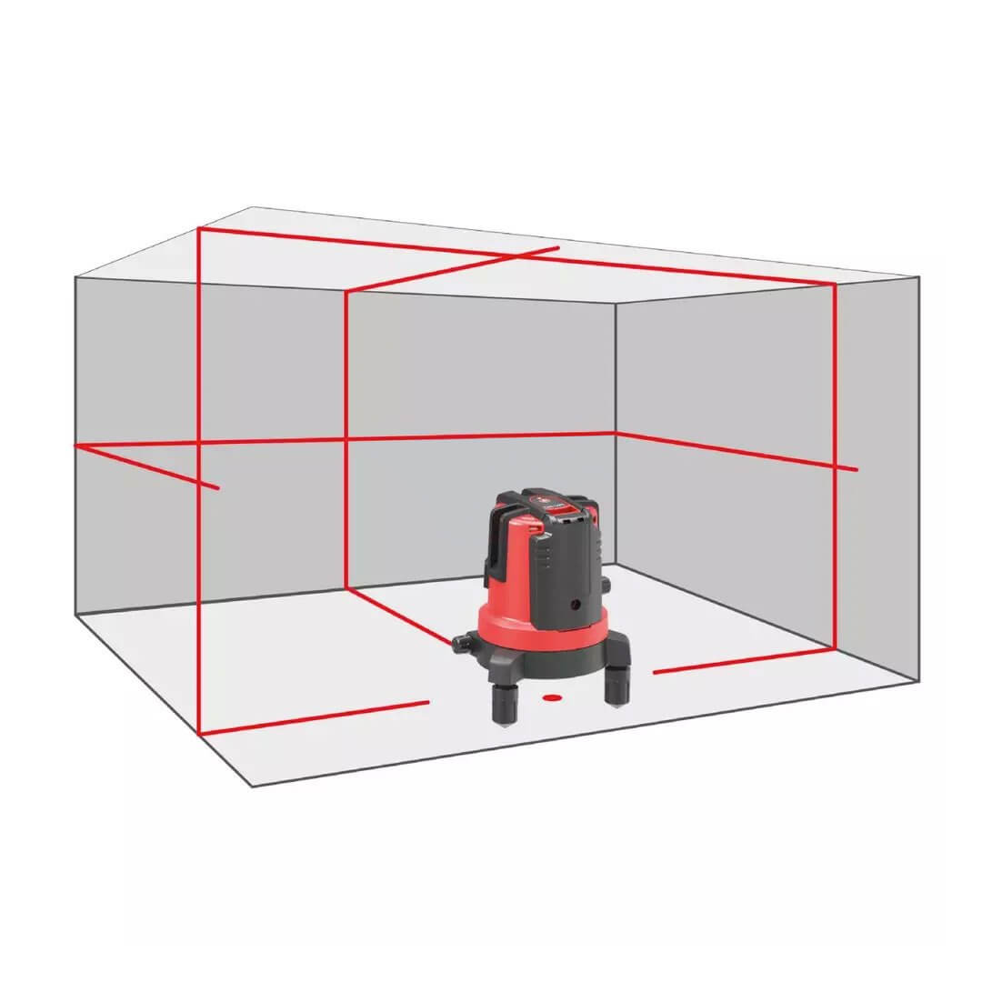 Tepegöz lazer noktasıyla birleştiğinde, üç 180° dikey lazer çizgisinin yatay lazer çizgisiyle kesişimi, kolay hizalama ve duvardan duvara veya yerden tavana hızlı yükseklik aktarımları için toplam beş yerleşim noktası oluşturur.